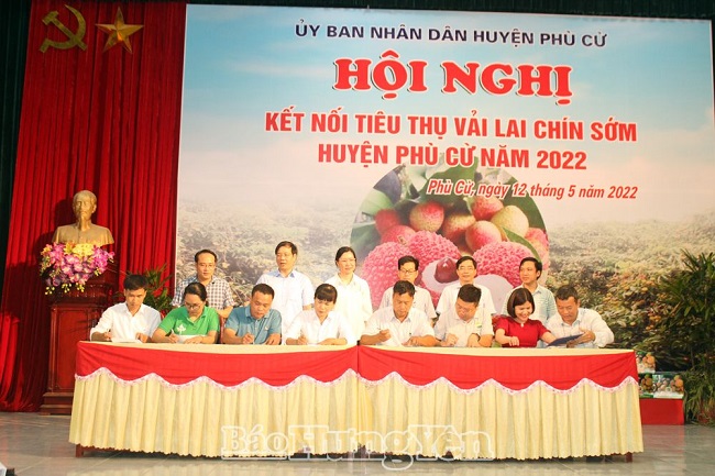 Tại hội nghị, đã diễn ra ký kết biên bản ghi nhớ hợp tác tiêu thụ sản phẩm vải lai chín sớm Phù Cừ năm 2022 giữa 4 doanh nghiệp và các hợp tác xã.