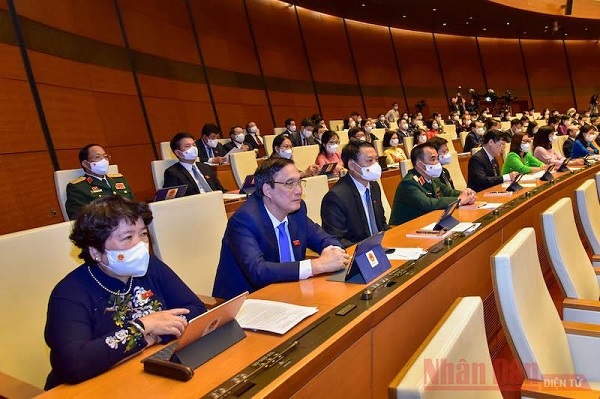 “Sau khi thảo luận kỹ lưỡng, với sự thống nhất cao, tất cả các thành viên Hội đồng bầu cử quốc gia có mặt 100% biểu quyết nhất trí thông qua Nghị quyết xác nhận 499 người trúng cử đủ tư cách đại biểu Quốc hội khóa XV” - Hội đồng bầu cử quốc gia báo cáo trước Quốc hội.