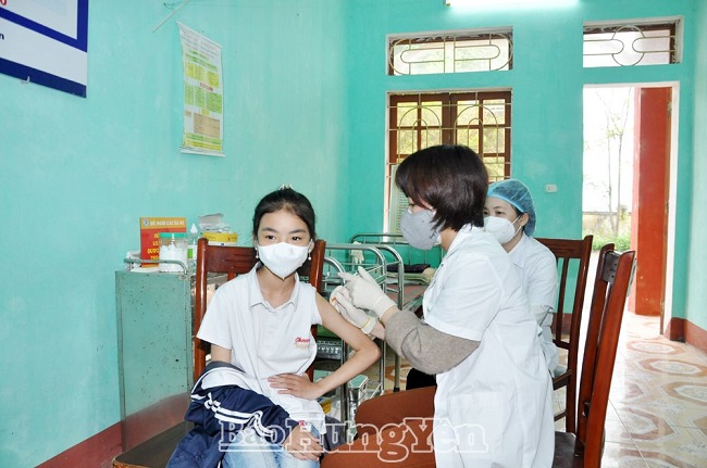 Tiêm vắc xin phòng Covid-19 cho trẻ em tại Trạm y tế xã Thiện Phiến (Tiên Lữ)