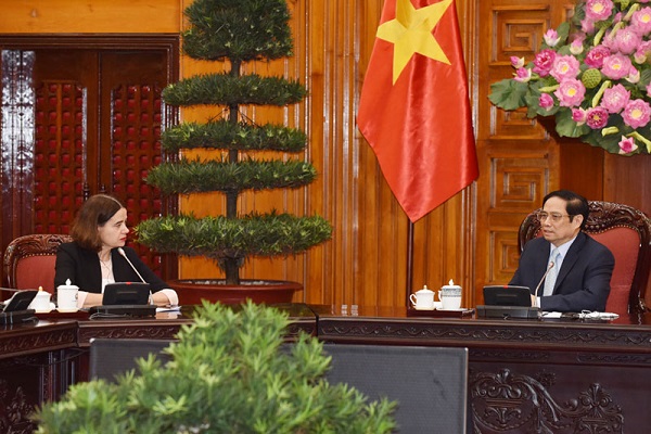Thủ tướng Phạm Minh Chính tiếp Đại sứ Australia tại Việt Nam Robyn Mudie. (Ảnh: TRẦN HẢI)