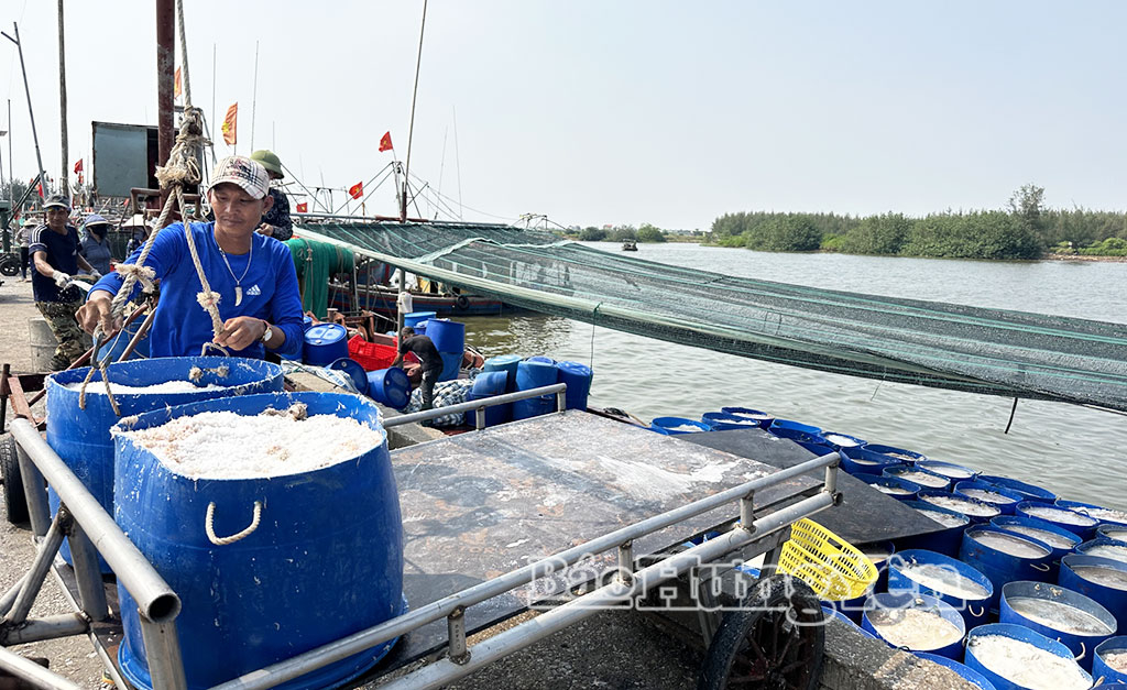 Người dân xã Nam Cường được lộc "tép moi" sau chuyến ra khơi.