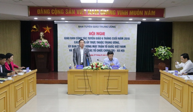 Tại hội nghị, các đại biểu đã được nghe Vụ Tổng hợp, Ban Tuyên giáo Trung ương báo cáo tổng kết công tác tuyên giáo 6 tháng cuối năm 2018.