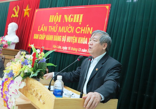 Ngày 16/3/2015, Huyện ủy Văn Lâm tổ chức Hội nghị lần thứ 19, Ban chấp hành Đảng bộ huyện. Dự hội nghị có các đồng chí: Nguyễn Tiến Thuyết, Tỉnh ủy viên, Phó trưởng ban thường trực Ban Tuyên giáo Tỉnh ủy; Phạm Anh Quân, Tỉnh ủy viên, Bí thư Huyện ủy Văn Lâm; đại diện các Ban xây dựng Đảng tỉnh; các đồng chí Ủy viên BCH Đảng bộ huyện, Ủy viên UBKT Huyện ủy Văn Lâm.