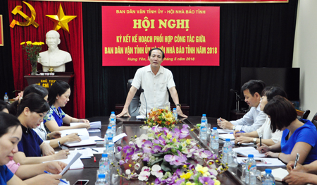Ngày 15.5, Ban Dân vận Tỉnh ủy tổ chức hội nghị ký kết chương trình phối hợp tuyên truyền về công tác dân vận với Hội Nhà báo tỉnh năm 2018. Ông Đoàn Văn Hòa, Ủy viên Ban Thường vụ Tỉnh ủy, Trưởng ban Dân vận Tỉnh ủy dự.