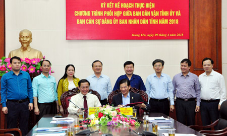 Ngày 9.4, tại trụ sở UBND tỉnh diễn ra hội nghị ký kết kế hoạch thực hiện chương trình phối hợp giữa Ban Dân vận Tỉnh ủy và Ban Cán sự Đảng UBND tỉnh năm 2018 - "Năm dân vận chính quyền". Các đồng chí: Đỗ Tiến Sỹ, Ủy viên BCH Trung ương Đảng, Bí thư Tỉnh ủy, Trưởng đoàn Đại biểu Quốc hội tỉnh; Nguyễn Văn Phóng, Phó Bí thư Tỉnh ủy, Bí thư Ban Cán sự Đảng UBND tỉnh, Chủ tịch UBND tỉnh dự. Cùng dự có các đồng chí trong Ban Thường vụ Tỉnh ủy; lãnh đạo UBND tỉnh.