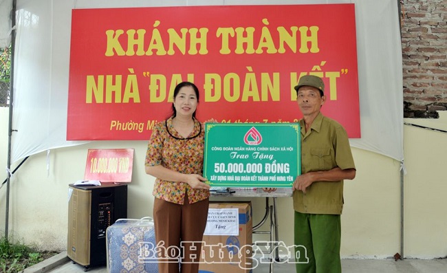 Sau hơn 3 tháng thi công, căn nhà mới được hoàn thiện với diện tích gần 40m2 và công trình phụ khép kín, tổng giá trị đầu tư là 108 triệu đồng. Trong đó, Quỹ “Vì người nghèo” tỉnh huy động từ Công đoàn Ngân hàng chính sách xã hội Chi nhánh tỉnh hỗ trợ 50 triệu đồng, Quỹ “Vì người nghèo” thành phố Hưng Yên hỗ trợ 20 triệu đồng, Tổng Công ty may Hưng Yên - Công ty cổ phần hỗ trợ 10 triệu đồng…
