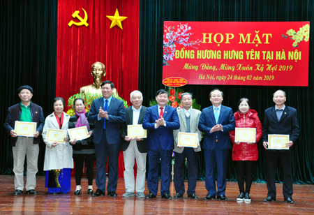 Ngày 24.2, tại hội trường Bộ Tư lệnh Lăng Chủ tịch Hồ Chí Minh (Hà Nội), Ban liên lạc Hội đồng hương Hưng Yên tại Hà Nội tổ chức gặp mặt đầu xuân Kỷ Hợi 2019.