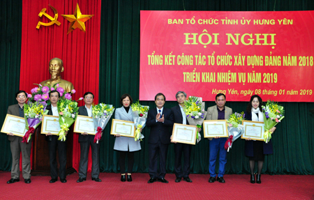 Nhân dịp này, Bí thư Tỉnh ủy Đỗ Tiến Sỹ đã trao Kỷ niệm chương "Vì sự nghiệp tổ chức xây dựng Đảng" tặng các cá nhân có nhiều cống hiến cho sự nghiệp tổ chức xây dựng Đảng; nhiều tập thể, cá nhân có thành tích trong công tác tổ chức xây dựng Đảng năm 2018 đã được Ban Tổ chức Tỉnh ủy tuyên dương, khen thưởng.