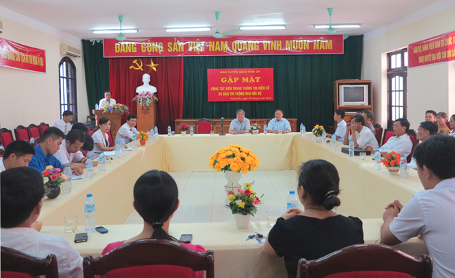 Sáng 19/6, nhân dịp Kỷ niệm 90 năm Ngày Báo chí cách mạng Việt Nam (21/6/1925 - 21/6/2015), Ban Tuyên giáo Tỉnh ủy tổ chức gặp mặt cộng tác viên Trang Thông tin điện tử (tuyengiaohungyen.vn) và Bản tin thông báo nội bộ Ban Tuyên giáo Tỉnh ủy. Dự buổi gặp mặt có các đồng chí: Nguyễn Tiến Thuyết, TUV, Phó Trưởng ban Thường trực Ban Tuyên giáo Tỉnh ủy; Vũ Văn Toàn, nguyên Ủy viên Ban Thường vụ, nguyên Trưởng ban Tuyên giáo Tỉnh ủy, Chủ tịch Hội đồng biên tập Trang Thông tin điện tử và Bản tin thông báo nội bộ; Nguyễn Văn Đông, nguyên Phó Trưởng ban Tuyên giáo Tỉnh ủy và đông đảo cộng tác viên đến từ các sở, ban, ngành, đoàn thể tỉnh.
