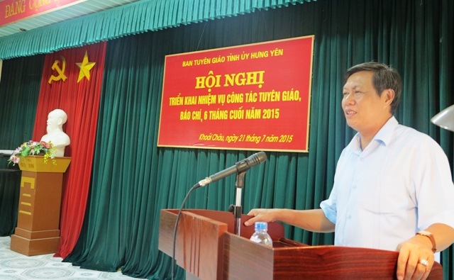 Sáng ngày 21/7/2015, tại huyện Khoái Châu, Ban Tuyên giáo Tỉnh ủy tổ chức Hội nghị triển khai nhiệm vụ công tác 6 tháng cuối năm 2015. Đồng chí Đỗ Xuân Tuyên, Ủy viên Ban Thường vụ Tỉnh ủy, Trưởng ban Tuyên giáo Tỉnh ủy dự và chủ trì hội nghị.