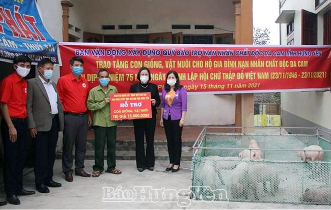 Ngày 15.11, Ban vận động xây dựng Quỹ Bảo trợ nạn nhân chất độc da cam (CĐDC) tỉnh tổ chức trao hỗ trợ con giống, vật nuôi tặng gia đình nạn nhân chất độc da cam huyện Phù Cừ. Đồng chí Quách Thị Hương, Ủy viên Ban Thường vụ Tỉnh ủy, Trưởng ban Dân vận Tỉnh ủy, Chủ tịch Ủy ban Mặt trận Tổ quốc Việt Nam tỉnh, Trưởng ban vận động xây dựng Quỹ Bảo trợ nạn nhân CĐDC tỉnh trực tiếp đến trao hỗ trợ.