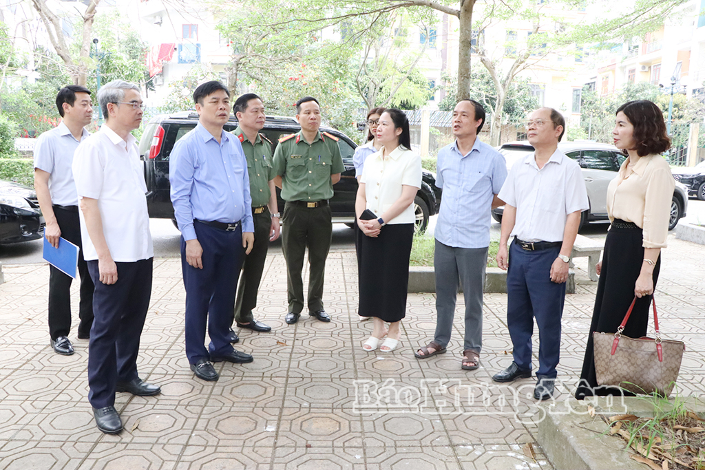 Đồng chí Phó Chủ tịch UBND tỉnh và đồng chí Giám đốc Sở Giáo dục và Đào tạo kiểm tra khu vực phòng thi tại điểm thi Trường THPT Nguyễn Đức Cảnh.