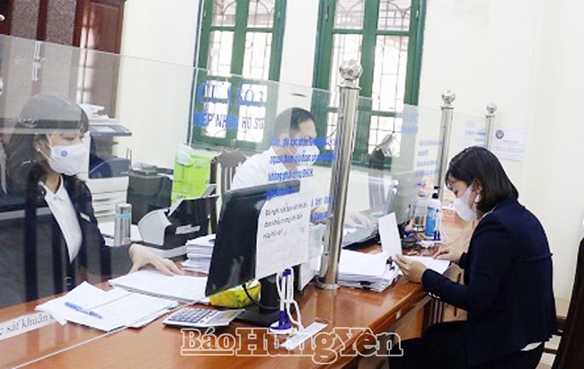 Người dân thực hiện thủ tục hành chính tại bộ phận một cửa BHXH tỉnh