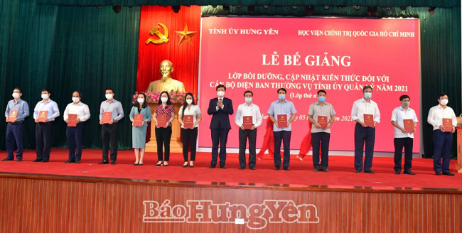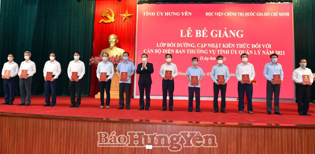 Phát biểu tại lễ bế giảng, đồng chí Trần Quốc Toản, Phó Bí thư Thường trực Tỉnh ủy, Chủ tịch HĐND tỉnh, Trưởng Ban Chỉ đạo lớp bồi dưỡng, cập nhật kiên thức đối với cán bộ diện Ban Thường vụ Tỉnh uỷ quản lý năm 2021 yêu cầu: Trên cơ sở những nội dung, thông tin, kiến thức được truyền đạt, các học viên tiếp tục tìm hiểu, nghiên cứu để hiểu đúng, hiểu đầy đủ và áp dụng vào thực tiễn công việc của mình, của cơ quan mình linh hoạt, phù hợp, hiệu quả. Đối với cấp ủy, thủ trưởng các cơ quan, đơn vị thì từ mô hình, cách thức tổ chức lớp học này là kinh nghiệm để tiếp tục tổ chức bồi dưỡng, cập nhật kiến thức cho đội ngũ cán bộ thuộc thẩm quyền quản lý; cần xác định đào tạo, bồi dưỡng và huấn luyện cán bộ là một nhiệm vụ quan trọng, phải được tiến hành thường xuyên, nền nếp, hệ thống; chủ động bám sát nhiệm vụ chính trị của địa phương, đơn vị để lãnh đạo, chỉ đạo quyết liệt, hiệu quả góp phần triển khai và thực hiện thắng lợi các mục tiêu, nhiệm vụ phát triển kinh – tế xã hội, xây dựng Đảng, hệ thống chính trị năm 2021 và những năm tiếp theo…
