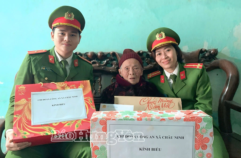 Chi đoàn Công an xã Châu Ninh trao quà Tết tặng Mẹ Việt Nam anh hùng Vũ Thị Phương.