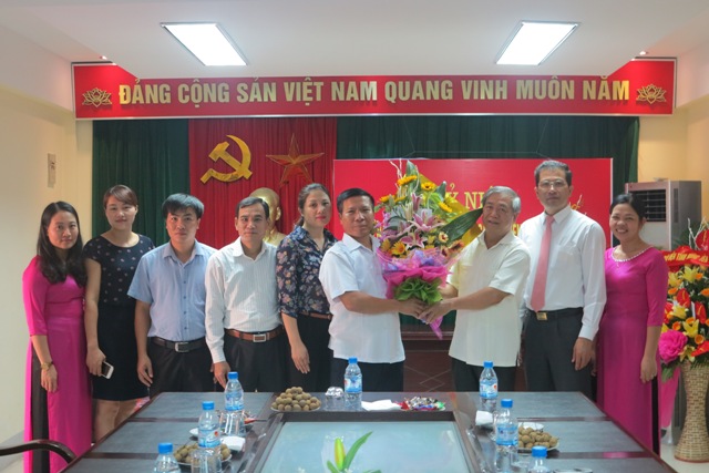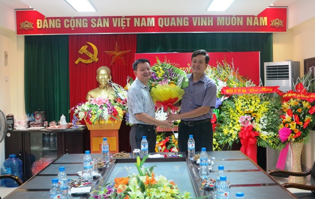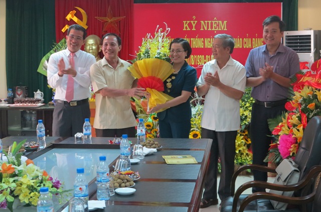 Đồng chí Đỗ Tiến Sỹ tặng hoa chúc mừng cán bộ, nhân viên Ban Tuyên giáo Tỉnh ủy