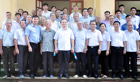 Đồng chí Đỗ Tiến Sỹ và các đại biểu với các đảng viên trong Chi bộ thôn Cù Tu,