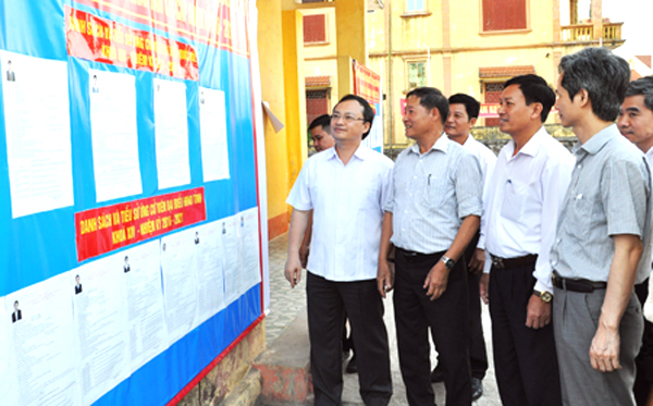 Tại 4 xã, Bí thư Tỉnh ủy Đỗ Tiến Sỹ kiểm tra việc niêm yết danh sách người ứng cử đại biểu Quốc hội khóa XIV và đại biểu HĐND nhiệm kỳ 2016 - 2021, lập danh sách cử tri; viết, phát thẻ cử tri; quản lý phiếu bầu; trang trí khánh tiết, chuẩn bị hòm phiếu, cơ sở hạ tầng ở các khu vực bỏ phiếu; tình hình an ninh trật tự, tâm tư nguyện vọng của cử tri...