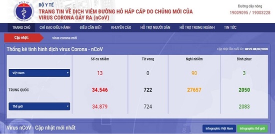 Sáng 8/2/2020, Bộ Y tế chính thức ra mắt Trang tin về dịch bệnh viêm đường hô hấp cấp do chủng mới của virus Corona gây ra (nCoV) trên Cổng Thông tin điện tử Bộ Y tế có tên miền https://ncov.moh.gov.vn và App thông tin về dịch bệnh nCoV có tên là Sức khỏe Việt Nam.