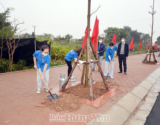 Lực lượng đoàn viên, thanh niên huyện Văn Giang hưởng ứng Tết trồng cây Xuân Nhâm Dần 2022