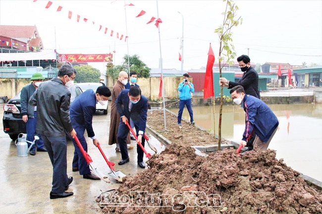 Sau lễ phát động, các đại biểu đã tham gia trồng cây trên tuyến đường thôn Xuân Nhân, xã Xuân Dục.