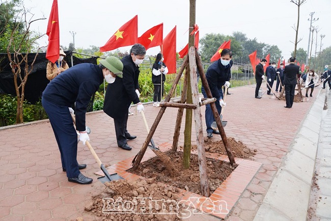 Các đại biểu trồng cây tại lễ phát động Tết trồng cây huyện Yên Mỹ