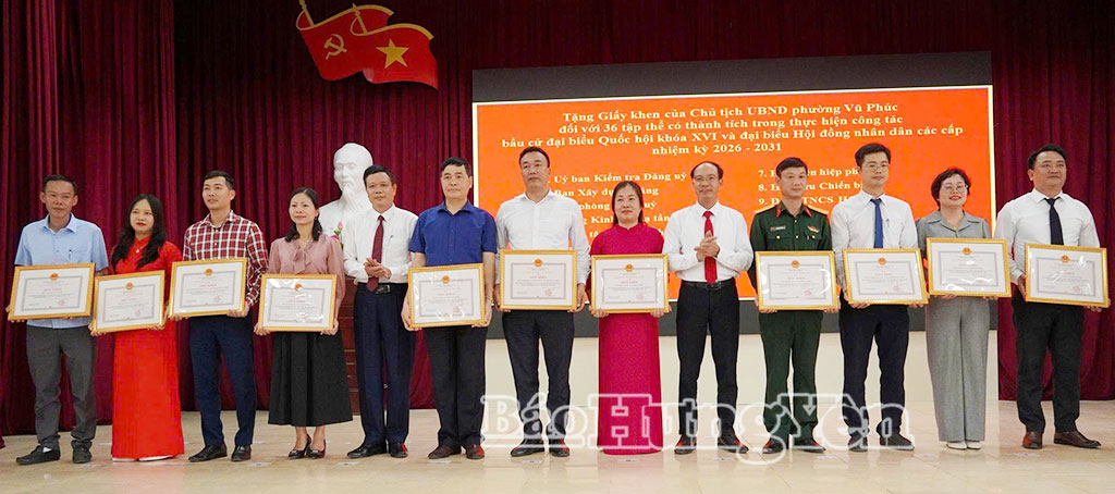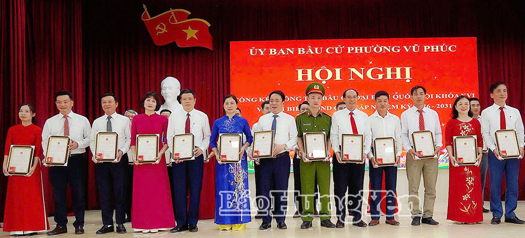 Tại hội nghị, lãnh đạo phường Vũ Phúc khen thưởng 68 tập thể, cá nhân có thành tích xuất sắc, góp phần vào thành công chung của cuộc bầu cử.