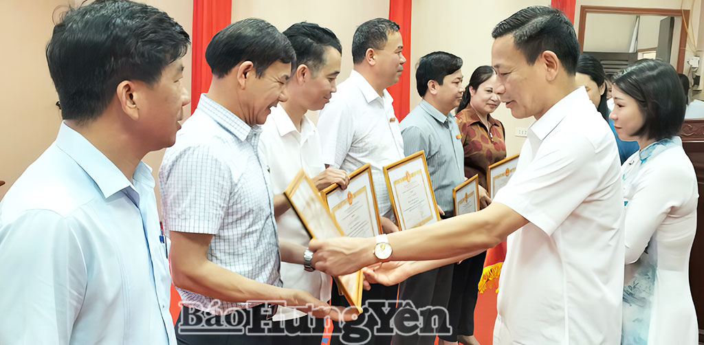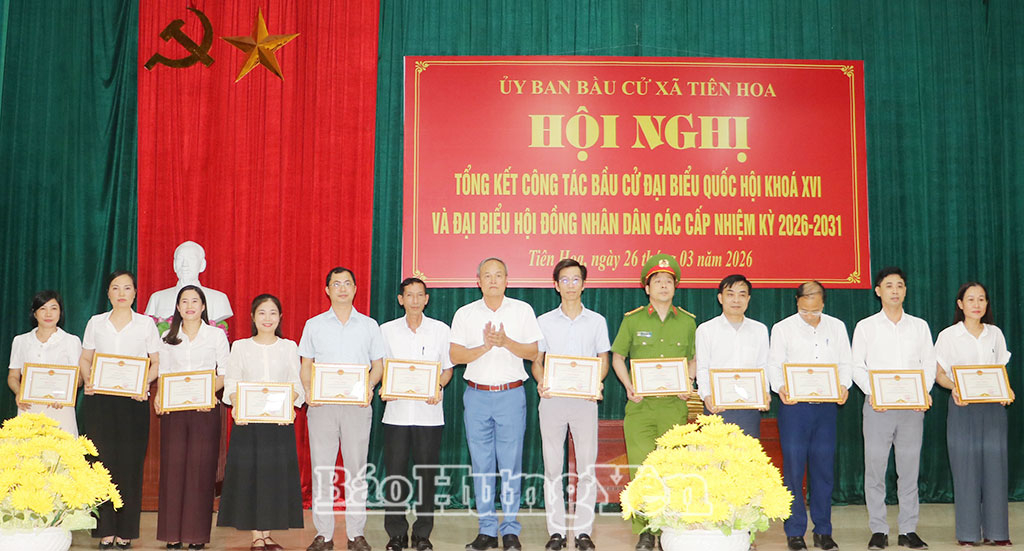 Tại hội nghị, lãnh đạo xã Tiên Hoa trao giấy khen tặng 8 tập thể và 50 cá nhân có thành tích xuất sắc trong công tác bầu cử.
