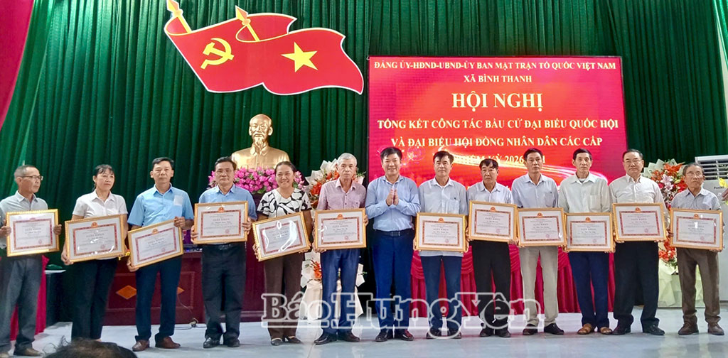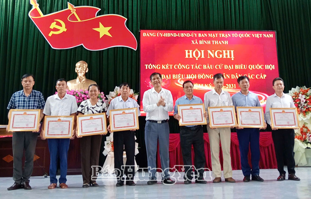Tại hội nghị, lãnh đạo xã Bình Thanh đã khen thưởng cho 8 tập thể, 52 cá nhân có thành tích xuất sắc góp phần vào thành công chung của cuộc bầu cử.