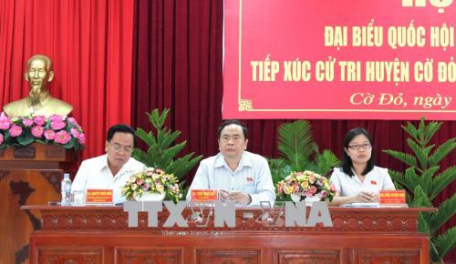 * Ngày 18/6, đồng chí Trần Thanh Mẫn, Chủ tịch Ủy ban Trung ương Mặt trận Tổ quốc Việt Nam cùng đoàn đại biểu Quốc hội đơn vị thành phố Cần Thơ đã tiếp xúc cử tri 2 huyện Cờ Đỏ và Vĩnh Thạnh. Tại cuộc tiếp xúc, các cử tri Cần Thơ bày tỏ sự phấn khởi, tin tưởng với kết quả Kỳ họp thứ 5 và kiến nghị đến đoàn đại biểu Quốc hội những vấn đề đang được quan tâm như: Kế hoạch đưa lực lượng công an chính quy xuống xã làm việc, trong khi ngoài biên chế trưởng công an xã mà chưa bố trí được biên chế thì sẽ sắp xếp vị trí thế nào; vấn đề về thời gian cho thuê đất của dự án Luật Đơn vị hành chính - kinh tế đặc biệt Vân Đồn, Bắc Vân Phong và Phú Quốc và đề nghị khi ban hành cần mang tính đồng bộ, phù hợp, tuân thủ quy định của Luật Đất đai hiện hành...