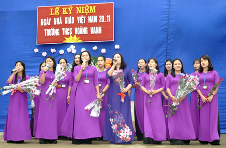 Một tiết mục văn nghệ chào mừng ngày 20.11 của cán bộ, giáo viên Trường THCS Hoàng Hanh (thành phố Hưng Yên)
