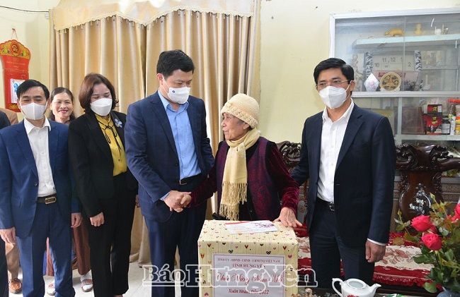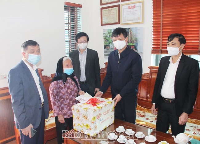 * Cùng ngày, đồng chí Lê Xuân Tiến, Ủy viên Ban Thường vụ Tỉnh ủy, Trưởng Ban Tuyên giáo Tỉnh ủy cùng đoàn công tác đến thăm, trao quà Tết của Tỉnh ủy, HĐND, UBND, Ủy ban MTTQ Việt Nam tỉnh tặng đảng viên Vũ Điển ở thị trấn Như Quỳnh và đảng viên Nguyễn Khắc Hiếu ở xã Trưng Trắc Huy hiệu 75 năm tuổi Đảng; ông Đỗ Như Hoanh, thương binh ở xã Đình Dù; bà Trần Thị Phòng, vợ liệt sỹ ở xã Tân Quang và tặng quà hộ nghèo tại xã Trưng Trắc.