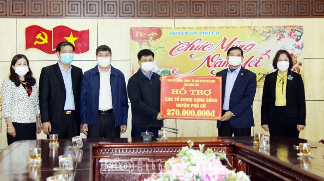 Trao tiền hỗ trợ các tổ covid cộng đồng cho lãnh đạo huyện Phù Cừ để chuyển tới các địa phương trong huyện