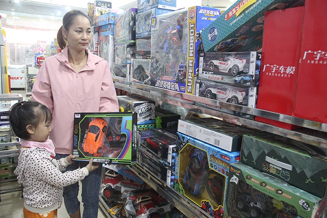 Thị trường đồ chơi cho trẻ em hiện nay rất phong phú và đa dạng. Tuy nhiên, các loại đồ chơi được phụ huynh chọn mua cho trẻ thường dựa vào yếu tố màu sắc, kiểu dáng chứ ít chú trọng đến độ an toàn đối với trẻ nhỏ. Anh Ngô Minh Quốc, xã Lý Thường Kiệt (Yên Mỹ) đang lựa chọn đồ chơi cùng con gái, cho biết: Anh thường đưa con đi mua những đồ chơi theo sở thích của con. Anh “bỏ qua” vấn đề xuất xứ cũng như độ an toàn vì theo anh nghĩ chơi một, hai ngày chắc “không vấn đề gì”.