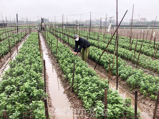 Nông dân thôn Tạ Hạ, xã Chính Nghĩa (Kim Động) chăm sóc hoa cúc