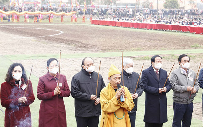 Phát biểu ý kiến tại Lễ Tịch điền, thay mặt lãnh đạo Đảng, Nhà nước, Ủy ban Trung ương Mặt trận Tổ quốc Việt Nam, Chủ tịch nước Nguyễn Xuân Phúc gửi đến các vị khách quý, toàn thể nhân dân về dự lễ hội và đồng bào cả nước lời chúc mừng năm mới sức khỏe, gia đình hạnh phúc, an khang, thịnh vượng; một năm mưa thuận gió hòa, mùa màng bội thu.