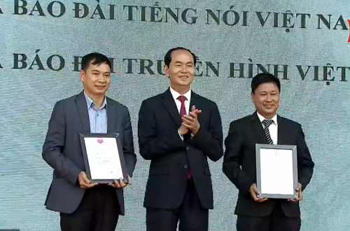 Liên chi hội Nhà báo Đài truyền hình Việt Nam và Liên chi hội Nhà báo Đài Tiếng nói Việt Nam. (Ảnh: HL)