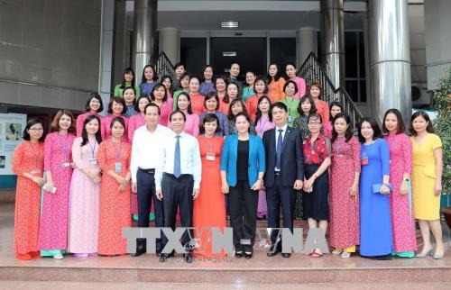 Chủ tịch Quốc hội Nguyễn Thị Kim Ngân với cán bộ, nhân viên Trung tâm. Ảnh: Trọng Đức - TTXVN