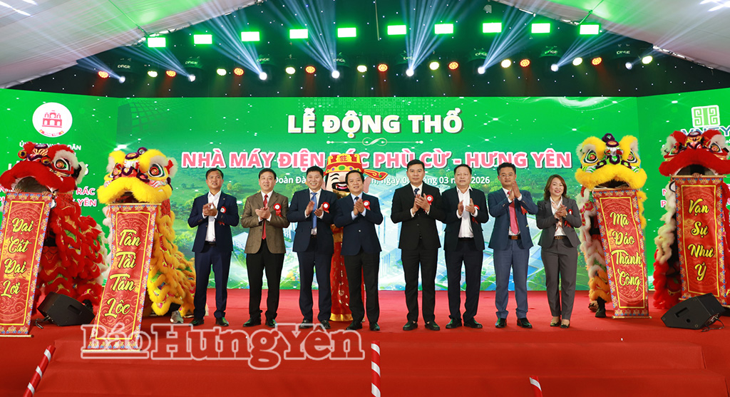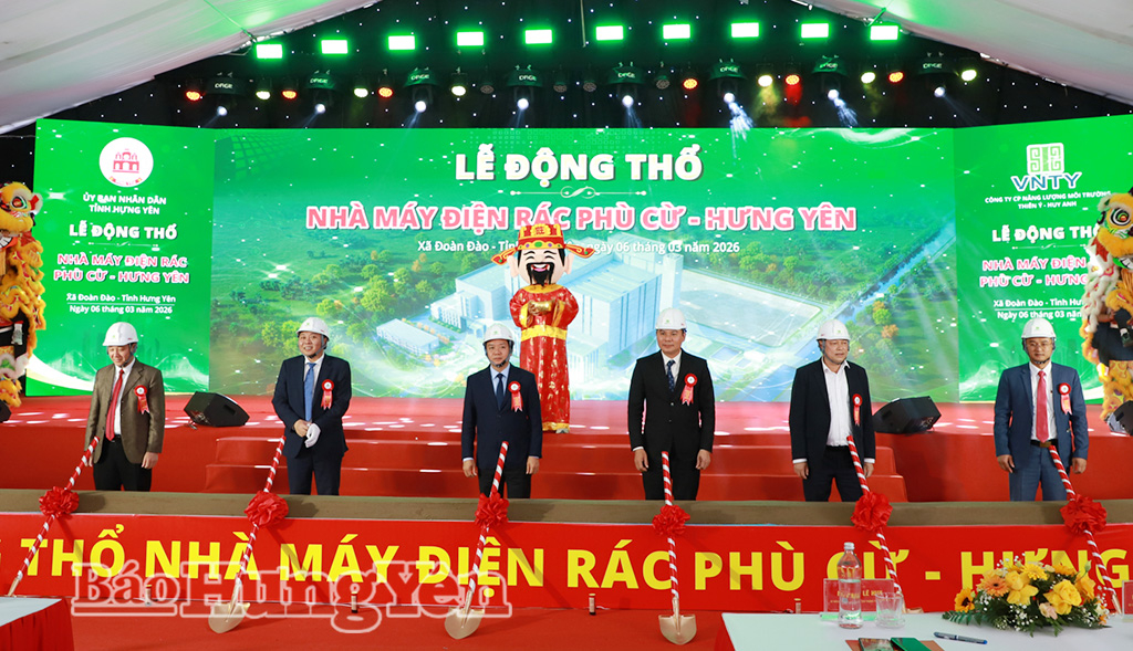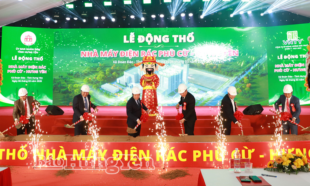 Chiều ngày 6/3, tại xã Đoàn Đào, Công ty Cổ phần Năng lượng môi trường Thiên Ý - Huy Anh tổ chức lễ khởi công Nhà máy Điện rác Phù Cừ. Dự buổi lễ có đồng chí Phạm Quang Ngọc, Ủy viên Ban Chấp hành Trung ương Đảng, Phó Bí thư Tỉnh ủy, Chủ tịch UBND tỉnh; các đồng chí Ủy viên Ban Thường vụ Tỉnh ủy, Thường trực HĐND, lãnh đạo UBND, Ủy ban MTTQ Việt Nam tỉnh; lãnh đạo một số sở, ngành, đoàn thể tỉnh.