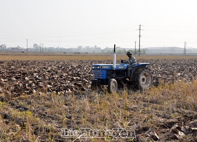 Nông dân huyện Tiên Lữ cày ải đất chuẩn bị cho gieo cấy lúa vụ xuân 2022