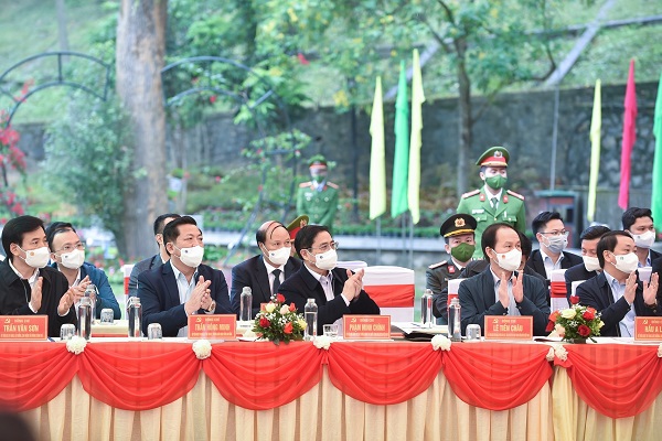 Thủ tướng Phạm Minh Chính dự Ngày hội Đại đoàn kết toàn dân tộc liên khu dân cư Pác Bó, Nặm Lìn, Nà Lẹng, xã Trường Hà, huyện Hà Quảng, tỉnh Cao Bằng
