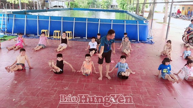 Câu lạc bộ bơi trường THPT Ân Thi (Ân Thi) hướng dẫn kỹ năng bơi và phòng, chống đuối nước cho trẻ em địa phương