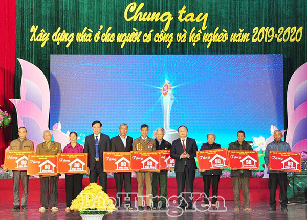 Tối ngày 26.12, tại Trung tâm Hội nghị tỉnh, Tỉnh ủy, HĐND, UBND, Ủy ban MTTQ Việt Nam tỉnh tổ chức Chương trình “Chung tay xây dựng nhà ở cho người có công và hộ nghèo tỉnh Hưng Yên năm 2019 - 2020”.