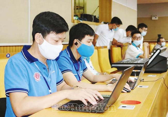 Nhân viên VNPT Hưng Yên hỗ trợ đường truyền phục vụ hội nghị kết nối cung cầu, tiêu thụ nhãn và nông sản của tỉnh Hưng Yên năm 2021 theo hình thức trực tuyến