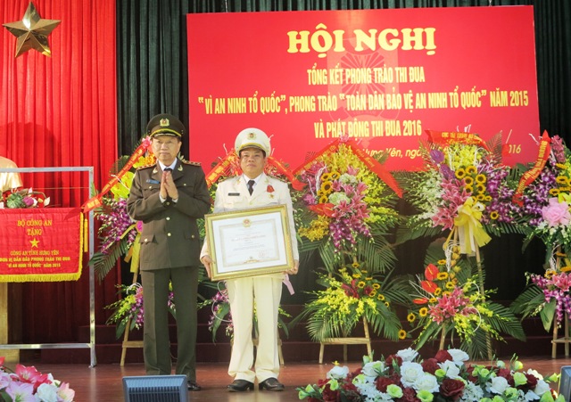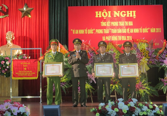 Nhân dịp này, Chủ tịch Nước đã tặng thưởng Huân chương Chiến công hạng Ba cho Đại tá Đỗ Đình Hào, Ủy viên Ban Thường vụ Tỉnh ủy, Giám đốc Công an tỉnh đã lập chiến công xuất sắc trong chiến đấu và phục vụ chiến đấu, góp phần vào sự nghiệp xây dựng chủ nghĩa xã hội và bảo vệ Tổ quốc; Thủ tướng Chính phủ tặng Bằng khen cho 1 tập thể, 2 cá nhân đã lập chiến công xuất sắc trong chiến đấu và phục vụ chiến đấu, góp phần vào sự nghiệp xây dựng chủ nghĩa xã hội và bảo vệ Tổ quốc; Bộ trưởng Bộ Công an tặng Cờ đơn vị dẫn đầu phong trào thi đua “Vì an ninh Tổ quốc” cấp cơ sở năm 2015 cho 7 tập thể, tặng Bằng khen 11 tập thể có thành tích xuất sắc trong phong trào “Toàn dân bảo vệ an ninh Tổ quốc” năm 2015; Tổng cục Chính trị Công an nhân dân tặng Cờ đơn vị tiêu biểu trong phong trào “Vì an ninh Tổ quốc” cấp cơ sở năm 2015 cho 4 tập thể; Chủ tịch UBND tỉnh tặng Cờ thi đua xuất sắc cho 3 tập thể có thành tích xuất sắc trong phong trào thi đua “Vì an ninh Tổ quốc”, phong trào “Toàn dân bảo vệ an ninh Tổ quốc” năm 2015 và tặng Bằng khen đối với 7 tập thể có thành tích xuất sắc trong phong trào “Toàn dân bảo vệ an ninh Tổ quốc” năm 2015.
