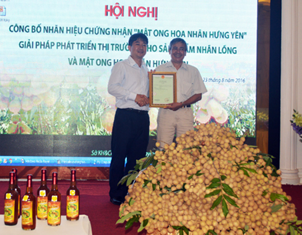 Ngày 13.6.2016, Cục Sở hữu trí tuệ đã ban hành Quyết định số 34713/QĐ – SHTT cấp Giấy chứng nhận đăng ký nhãn hiệu chứng nhận “Mật ong hoa nhãn Hưng Yên”. Tại hội nghị, đại diện Cục Sở hữu trí tuệ đã trao Giấy chứng nhận đăng ký nhãn hiệu chứng nhận “Mật ong hoa nhãn Hưng Yên” cho Chi cục Quản lý chất lượng nông, lâm sản và thủy sản tỉnh.