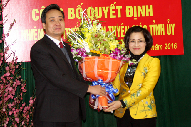 Thay mặt Ban Thường vụ Tỉnh ủy, đồng chí Đỗ Xuân Tuyên, Ủy viên Ban Thường vụ, Trưởng Ban Tổ chức Tỉnh ủy đã trao Quyết định của Ban Thường vụ Tỉnh uỷ về việc điều động, phân công, bổ nhiệm đồng chí Đỗ Hữu Nhân, TUV, Hiệu trưởng Trường Chính trị Nguyễn Văn Linh, giữ chức Phó Trưởng ban Tuyên giáo Tỉnh uỷ kể từ ngày 15/2/2016.