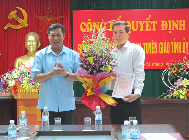 Tại Hội nghị, được sự ủy quyền của Thường trực Tỉnh ủy và Lãnh đạo Ban Tổ chức Tỉnh ủy, đồng chí Nguyễn Thị Kim Thúy, Chánh Văn phòng Ban Tuyên giáo Tỉnh ủy đã công bố Quyết định số 1579 – QĐ/TU ngày 30/3/2015 của Ban Thường vụ Tỉnh ủy về bổ nhiệm Phó trưởng Ban Tuyên giáo Tỉnh ủy đối với đồng chí Phạm Văn Nghệ, Trưởng phòng Tuyên truyền Ban Tuyên giáo Tỉnh ủy.