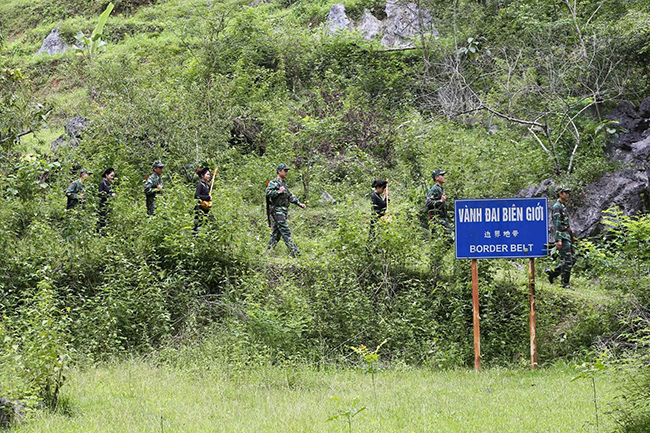 Bộ đội Biên phòng Ðồn Biên phòng Cửa khẩu Sóc Giang (huyện Hà Quảng, tỉnh Cao Bằng) cùng đồng bào các dân tộc tuần tra biên giới _Ảnh: TTXVN