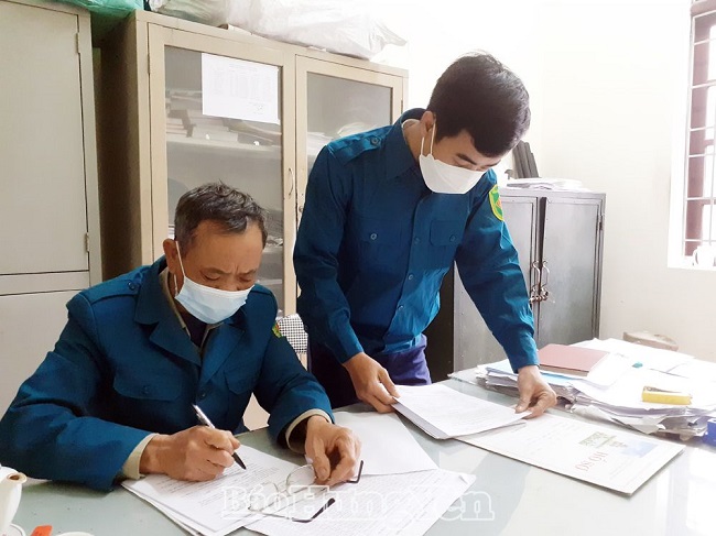Ban Chỉ huy quân sự xã Trung Nghĩa kiểm tra hồ sơ của công dân được tuyển chọn nhập ngũ năm 2022
